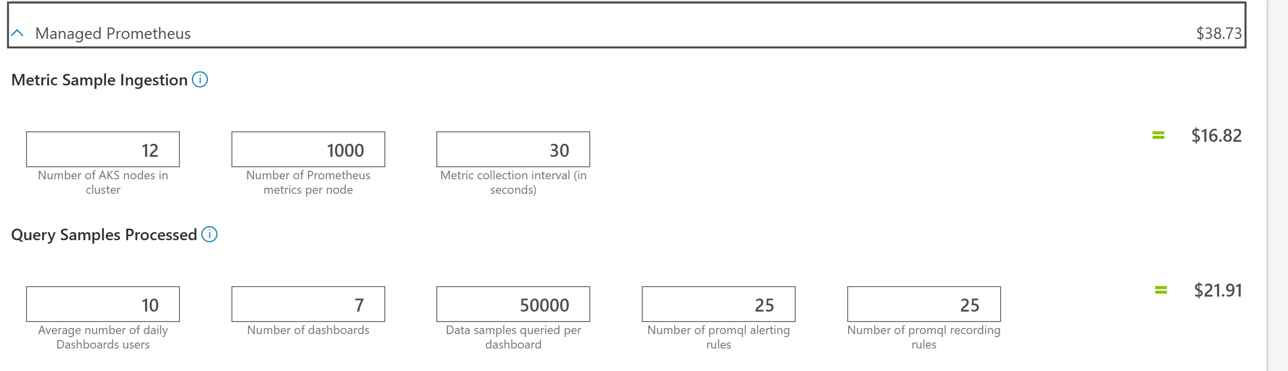 Like other logging solutions in Azure, this is dependent on the amount of data that is ingested into Azure Monitor. Logs from the cluster are ingested into Log Analytics and metrics are scraped and stored in Managed Prometheus on Azure.