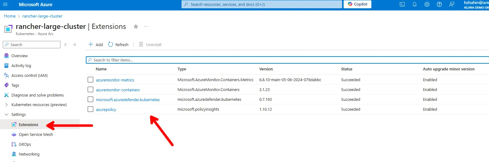 The full list of extensions are listed on the docs, but the ones installed here in particular give the most benefit to platform teams that want to use Arc as a way to manage all their clusters in a centralized, consistent way.