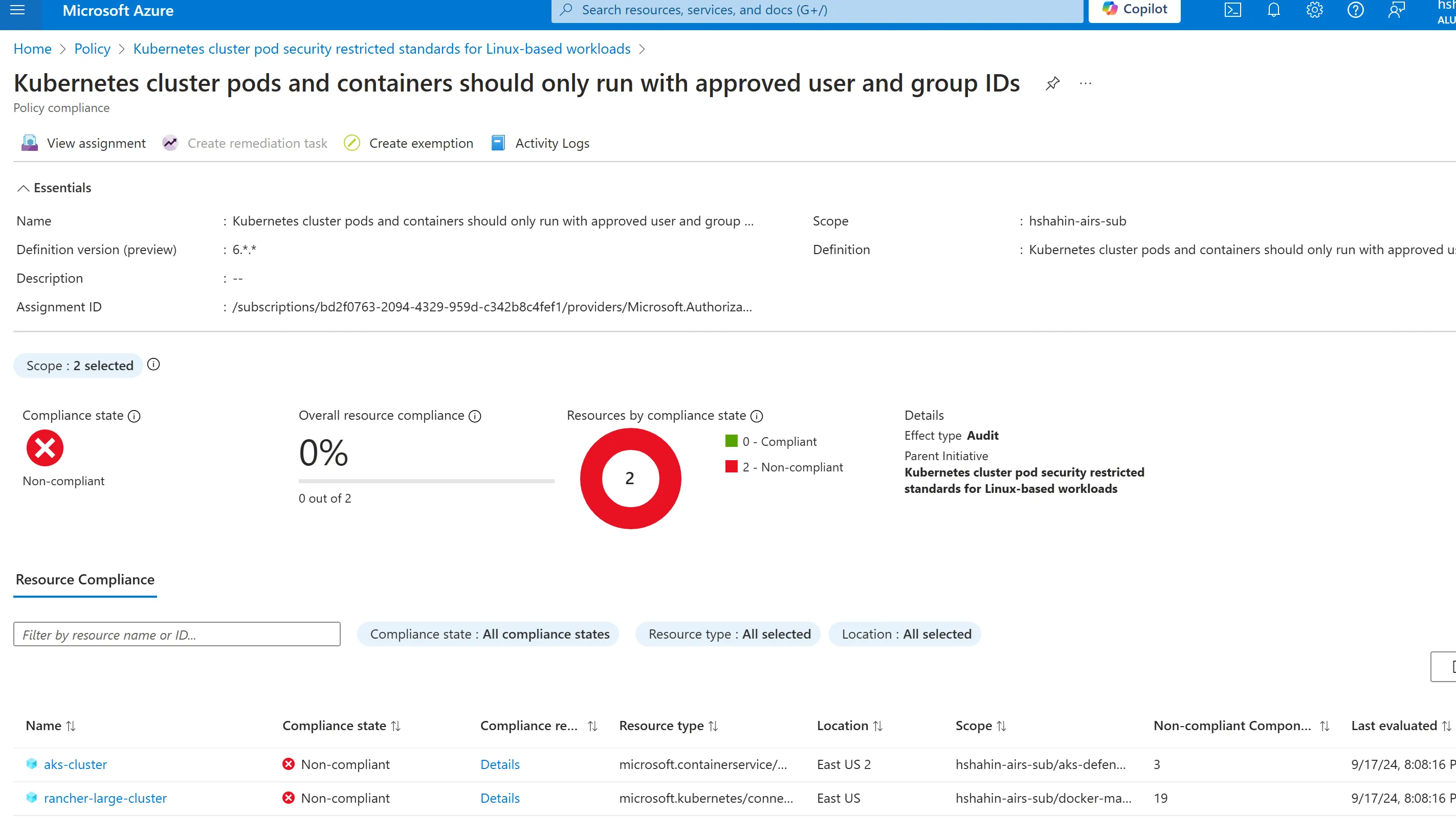 Azure policy allows you to govern and ensure your cluster is in compliance with security and deployment best practices. Policies can be configured in an audit mode to report back on compliance and then even further in deny mode to proactively block activities that go against configured policies.
